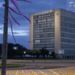 Fachada da Câmara Legislativa do DF em Brasília, com atmosfera sombria representando falhas no combate ao abuso infantil.